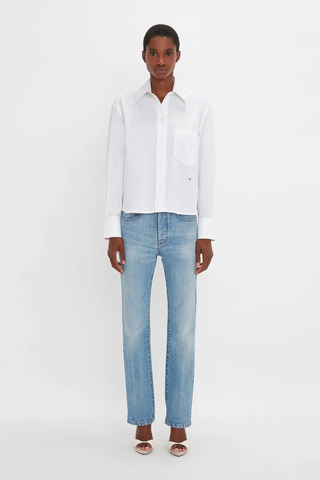 Pointed Collar Oversized Shirt In White